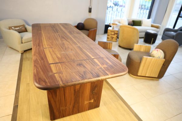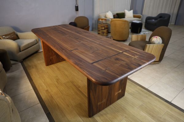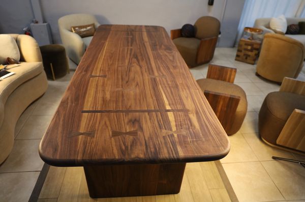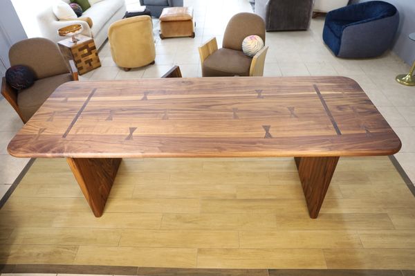 WALNUT BUTTERFLY DINNING TABLE.This 8ft Walnut Butterfly Dining Table features hand-crafted butterfly inlays that highlight both beauty and strength. Made in rich walnut, it brings warmth and character to any space. We can also craft this design in ash, white oak, teak, or iroko to suit your style and setting.