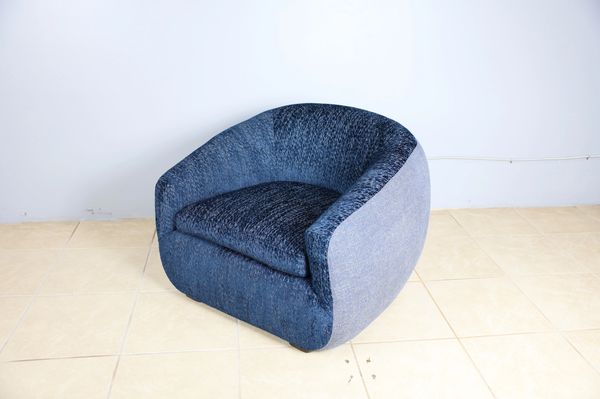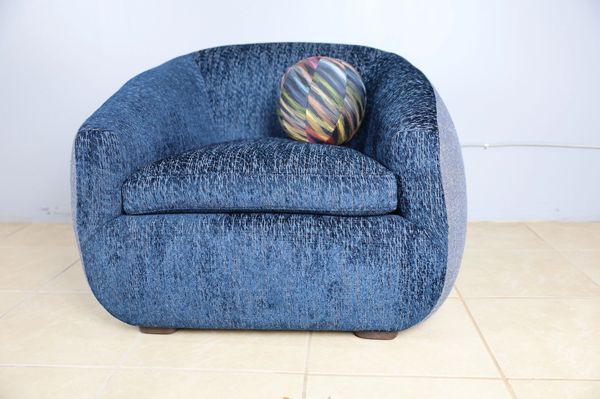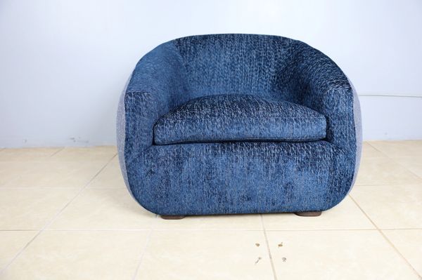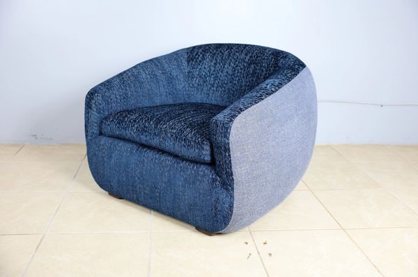 Meet Piera Chair.Meet comfort in style. This custom barrel chair is wrapped in plush foam and features a feather-and-down seat cushion for that perfect sink-in feel. Upholstered in rich, two-tone fabric and grounded by low-profile walnut feet, it’s a modern statement made for everyday lounging.