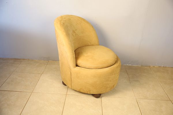 our modern curved accent chair — a blend of comfort and style perfect for any space. Featuring a rounded backrest, plush seat cushion, and a sleek, armless design, it’s ideal for creating a cozy yet sophisticated corner in your home. The compact, rounded base sits on charming ball-style wooden legs, giving it a unique and contemporary touch.